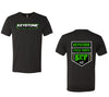 New Keystone Cycle Parts logo on the front and traditional shield logo on the back - green logos on either vintage black or premium heather colored shirts