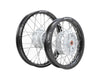 After seeing many aggressive riders tear apart KLX110 wheels racing them on mini MX tracks we wanted to bring a new high quality and affordable option to the market. So, our wheels come ready to run from bearings to the rim! Starting out we had the factory install quality NTN bearings with the proper spacer behind/between them. Next is our OEM style, “bolt in place”, cast aluminum hub painted in silver to match the OEM brake panel (our TB logo is also cast in). For added strength we used stiffer/harder Stainless Steel spokes that are weather resistant compared to the basic steel OEM spokes. Wrapping up the complete wheel is the aircraft grade 7050 aluminum rims in satin black with the TBparts.com logo! The black rims look great once installed! These are lighter, stronger, and more weather resistant than the factory steel rims. Not to mention ours come laced saving you a ton of time and hassle! An OEM pair of wheels like this will set you back over $770!!! The value these offer is unmatched!