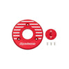 TB parts dress up cover and crankshaft plug for the ignition/generator case on 2010+ Kawasaki KLX110. CNC finished billet aluminum, red hard anodized, and a sleek race oriented design.